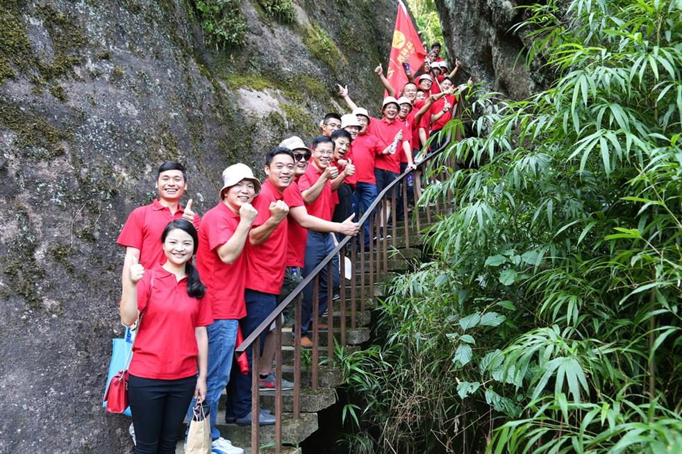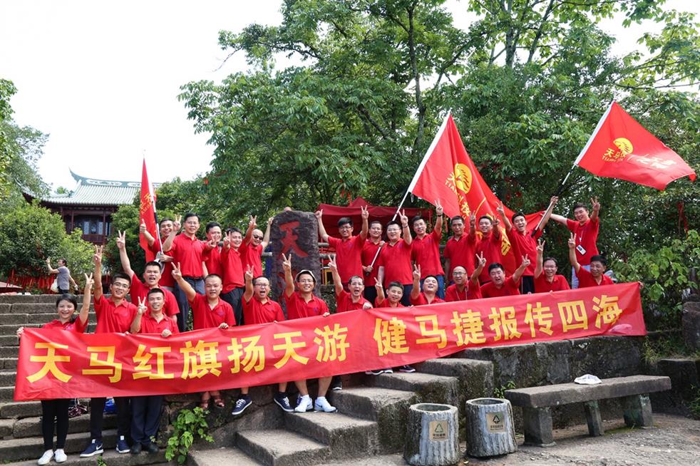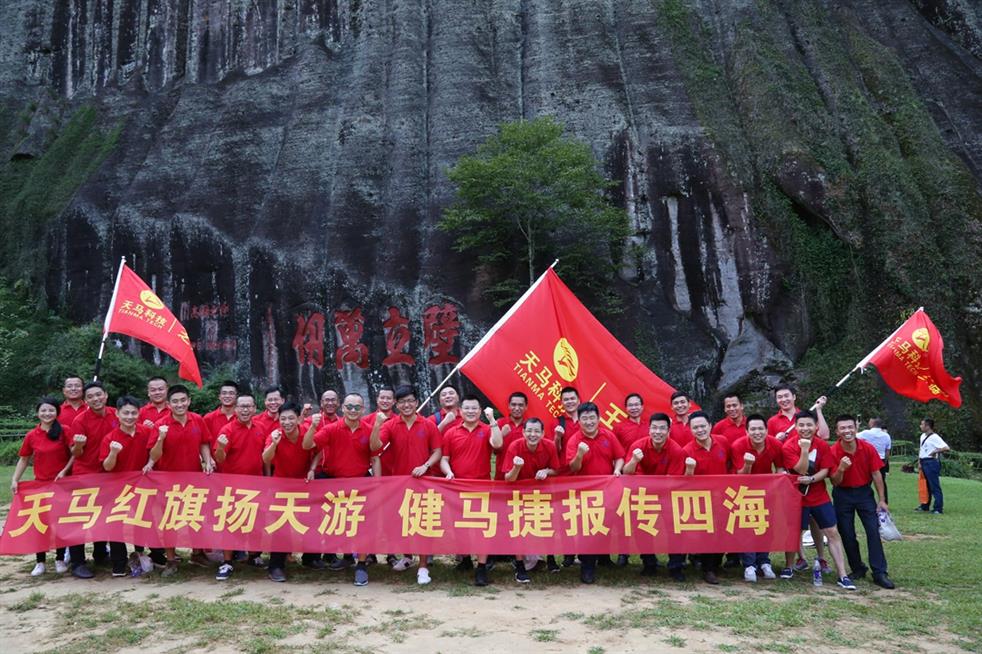 天馬科技訊 “天馬紅旗揚天游,健馬捷報傳四海。”7月19日,世界自然與文化雙世遺產(chǎn)勝地武夷山天游峰頂傳來天馬人的陣陣爽朗的笑聲。為豐富、活躍集團員工的業(yè)余文化生活,和著2017年半年度經(jīng)營分析會擂響的戰(zhàn)鼓,天馬科技在經(jīng)營分析會結(jié)束后,組織三十多名集團精英代表挑戰(zhàn)自我,開展了勇攀武夷山第一勝地天游峰活動,并在其后進行九曲漂流、觀看《印象大紅袍》山水實景演出,體驗武夷山文化,積蓄沖刺年度經(jīng)營目標的力量。