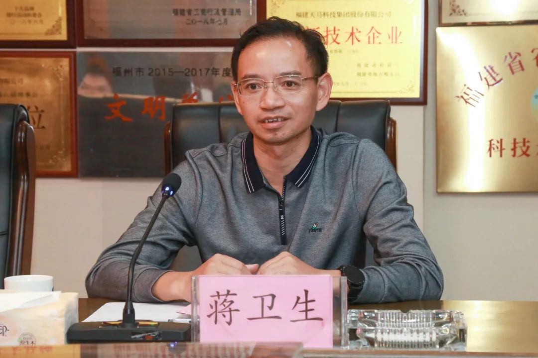 座談中,董事長陳慶堂先生代表天馬科技集團(tuán),對蔣衛(wèi)生部長一行蒞臨天馬科技集團(tuán)考察表示熱烈歡迎。他表示,天馬科技集團(tuán)在福建省港灣海洋經(jīng)濟(jì)的蓬勃發(fā)展中誕生,三十多年來,天馬科技大力推動數(shù)字經(jīng)濟(jì)、海洋經(jīng)濟(jì)、綠色經(jīng)濟(jì)、文旅經(jīng)濟(jì)發(fā)展,將發(fā)展水產(chǎn)業(yè)、畜牧業(yè)、一二三產(chǎn)業(yè)和海洋食品產(chǎn)業(yè)視為搶占未來發(fā)展制高點的戰(zhàn)略之舉,堅定不移走特種水產(chǎn)業(yè)“專精特”高質(zhì)量發(fā)展之路,爭當(dāng)國家現(xiàn)代農(nóng)業(yè)(漁業(yè))產(chǎn)業(yè)的引領(lǐng)者、示范者!