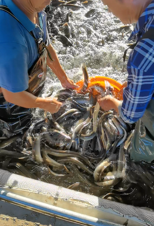 天馬科技訊 3月5日,天馬科技集團詔安升馬智慧綠色生態(tài)養(yǎng)殖基地再迎出魚,清晨的陽光灑在水面上,微風吹拂著,泛起漣漪,鰻魚來回游動靈活無比,乘著豐收的喜悅,工人們紛紛合力將裝滿鰻魚的魚桶拉上岸邊。
